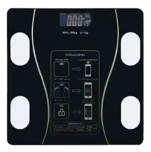 CARACTERÍSTICAS PRINCIPALES Bascula inteligente mide: BMI % Grasa. % Musculo. % Agua. Grasa viseral. Huesos Metabolismo. - Material: Vidrio templado de 5mm. - Capacidad: 180 kg/5kg. - Apagado automático. - Medidas en libras o kilogramos. - Diseño: Cuadrada. - Pantalla LCD grande. - Estilizado y elegante. - No necesita botón de encendido. - Incluye Bluetooth. - Se puede monitorear el peso de todos los integrantes de la familia por la app. - Aplicación: OKOK International. - Compatible con Bluetooth 4.0 o más. - Compatible con IOS (7.0 o más) - ANDROID (4.3 o más) - Funciona con 2 pilas AAA(No incluidas)