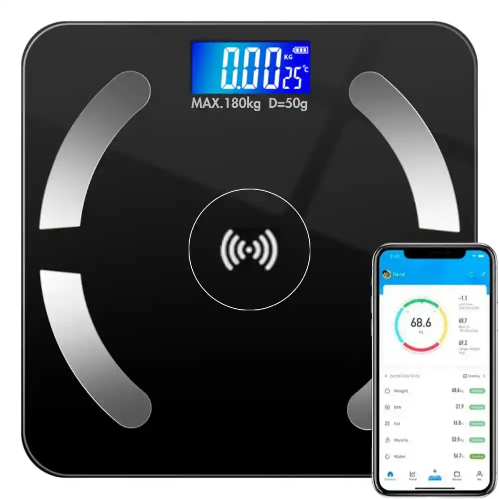 Bascula Inteligente Pesa Bluetooth Vidrio Digital App Lleva un control completo de tu salud y bienestar con esta moderna báscula inteligente Bluetooth, diseñada para ofrecer mucho más que solo tu peso. Con conectividad a una app móvil, pantalla digital clara y un diseño elegante de vidrio templado, esta báscula es ideal para uso personal, familiar o deportivo. Características - Alta precisión: Equipado con sensores de alta precisión que ofrecen resultados confiables. - Diseño moderno y resistente: Plataforma de vidrio templado, elegante, fácil de limpiar y resistente a impactos. - Pantalla LED/LCD clara: Muestra lecturas instantáneas con retroiluminación para fácil visualización en cualquier momento del día. - Fuente de alimentación: pilas AAA - Dimensiones: Aproximadamente 26 × 26 cm