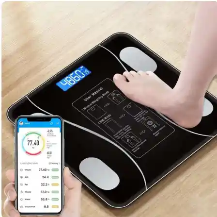 Material: Vidrio templado de 6mm. Capacidad: 180 kg Apagado automático. Medidas en libras o kilogramos. Diseño: Cuadrada. Pantalla LCD grande. Estilizado y elegante. No necesita botón de encendido. Incluye Bluetooth. Se puede monitorear el peso de todos los integrantes de la familia por la app Compatible con Bluetooth 4.0 o más. Compatible con IOS (7.0 o más) - ANDROID (4.3 o más) Funciona con 3 pilas AAA(No incluidas) Medida: 30 x 30 cm DATOS ARROJADOS: Porcentajes: musculo, humedad, tasa de proteína, grasa subcutánea. Masa ósea. BMR Edad del cuerpo. Grasa visceral. Peso estándar. Control de peso. Grasa corporal. Peso sin grasa. Peso muscular. La cantidad de proteína. Grado de obesidad. Tipo de cuerpo. Peso.