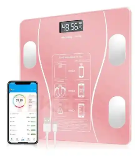Este Báscula es compatible con nuestro móvil o Tablet, lo que nos permitirá llevar un control estricto de lo que pesamos y de los progresos que hagamos desde nuestro dispositivo. Incluye gráficos, consejos, evolución… y es muy fácil de conectar. Este analizador corporal mezcla un exquisito diseño con las funcionalidades tecnológicas más avanzadas para poner a nuestro alcance la información más detallada sobre nuestro cuerpo. La Báscula puede medir los siguientes datos: * Peso * % de Hueso * Grasa Corporal * % de Agua Corporal * kcal Soporta un máximo de 180 kilos. Está diseñada con plástico ABS y una capa de 6 milímetros de vidrio templado. Incluye pantalla con luz LCD de 4.3 pulgadas retroalimentada con fondo azul y es muy fácil de manejar. Aplicación gratuita para iOS y Android con la que podrá conocer de forma precisa su evolución corporal y la de 9 usuarios más. Es ligera y fácil de usar. En Google App Store (dispositivos Android) y en Apple (dispositivos iOs) encontrarás la aplicación totalmente gratis para descargar. Unidades en Kg / lb Peso mínimo: 5Kg Peso máximo: 180 Kg Bluetooth: 2.1 Dispositivos de soporte: Android 4.3 en adelante. IPhone 7 en adelante. Apagado automático Alerta por sobrecarga Temperatura de trabajo: 10 a 40ºC