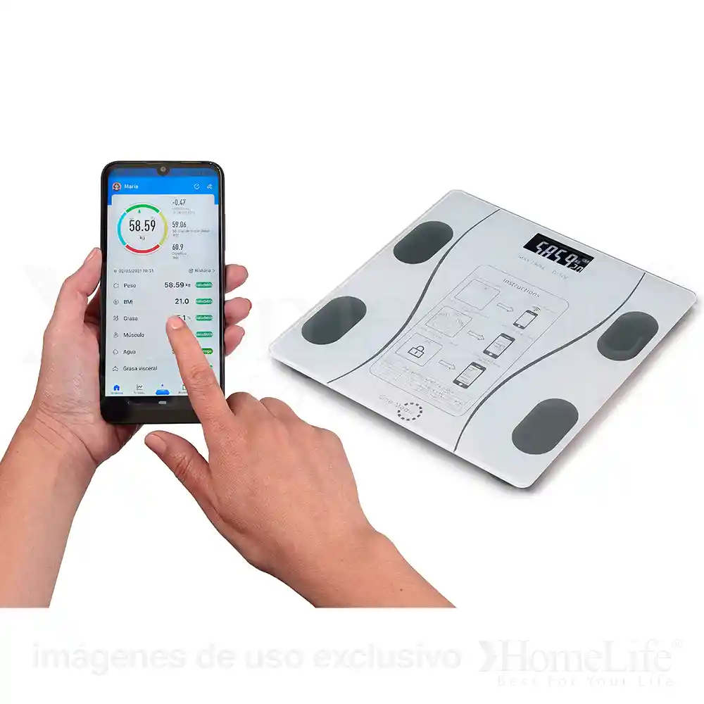 DESCRIPCIÓNLa báscula inteligente recargable Smart JK-100 un instrumento de hogar electrónico para medir el peso corporal. al descargar en tu teléfono móvil la app OKOK puedes obtener datos extras de tu cuerpo según tu peso. Cuenta con botón para cambiar medidas entre Kg/Lb. contiene metro parea medir altura. cable USB para recargar (usar el adaptador a corriente de su móvil). mide la temperatura ambiente y trae manual en español. La pesa se utiliza como equipo de hogar en pacientes adultos y pediátricos. Usar con medias o descalzo (a). Homelife-OneMedic.Modelo JK-100Uso Adultos y pediátricoMedición Kg ó Lb (máximo hasta 180 kG)Método de medición Digital. electrónica. Bluetooth. División de medida: 50 g.Indicador Kg/Lb. indicador batería. temperatura ambiente °C.Pantalla LCD iluminación nocheRangos de medición 0.2 Kg – 180 KgPrecisión de medición 50 gFunción Bluetooth. peso en Kg ó Lb. indicador batería baja. temperatura ambiente. Con la aplicación instalada en móvil: Músculo. Grasa. Hueso. Agua. Grasa visceral. Obesidad. Metabolismo. Proteína. Índice de Masa Corporal (BMI). Masa corporal magra (LBM). Gráfica de seguimientoApagado automático después de 15 segundos de inactividadFuente de poder Cable USB (utilizar adaptador a corriente de su teléfono móvil)Peso Aprox. 0.66 Kg con empaqueDimensión Aprox. 260x260x21mm (L x A x A)Garantía 1 añoContenido Caja de empaque. báscula. cable USB. metro. manual.