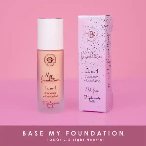 BASE 2 EN 1 MY FOUNDATION BLOOMSHELL 2.5 LIGHT NEUTRAL 38 ML : La Base 2 en 1 My Foundation Bloomshell es todo lo que necesitas para un look perfecto y natural. Esta base de maquillaje no solo tiene una textura ligera y una cobertura natural de media a completa, sino que también se transforma en un corrector espectacular. Esta base se difunde magistralmente la linea entre maquillaje y la piel. Semi mate y contiene acido hialuronico. Características top : Textura Ligera : Se aplica como una caricia, sin sensación pesada. 💫 Cobertura Versátil : ¡Base y corrector en un solo producto! Acabado Semi Mate: Look fresco y sin brillos. Hidratación Power: Con ácido hialurónico para una piel suave e hidratada. 💦 ¡Haz que tu piel luzca radiante y natural con My Foundation de Bloomshell! ¡La base que estabas esperando!