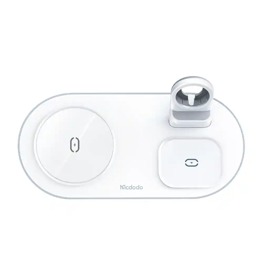 Estación de carga inductiva inalámbrica 3 en 1 1 estación de carga inductiva para cargar 3 dispositivos, ahorre costos. El cargador inductivo rápido inalámbrico, compatible con teléfonos habilitados para Qi, Smartwatch y Audífonos con carga inalámbrica, puede cargar rápidamente estos dispositivos de forma inalámbrica al mismo tiempo. Recomiendan el adaptador QC 3.0 9V/2A, no incluido. Material: policarbonato + ABS. Entrada: PD (QC) 18-27W Salida: 15W/10W/7.5W -Admite la carga de 3 dispositivos, incluido el teléfono móvil, el auricular TWS y smartwatch -El diseño de carga magnética de imanes alineados hace que la carga inalámbrica sea más efectiva -Apto para la colocación de auriculares TWS