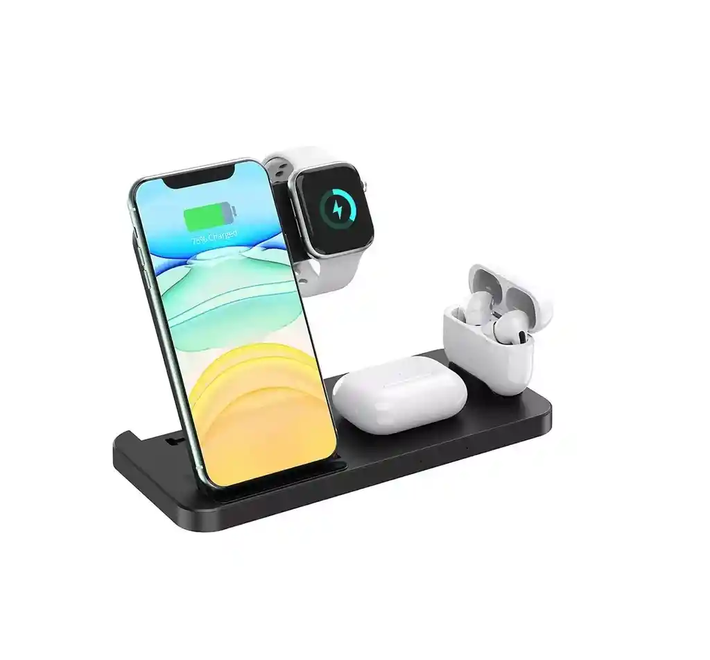 Soporte de carga inalámbrico 4 en 1: el soporte de carga multifuncional con interfaces iPhone/Micro/Type-C se puede cargar para casi todos los dispositivos móviles, como iPhone, iPad, Samsung, LG, HTC, Huawei, Sony y la base. La carga se puede girar libremente 360 grados. Compatibilidad: universal. Compatible con la serie iWatch para iWatch para Airpods y para iPhone para Samsung Galaxy S10, S9, S9 Plus, S8 Plus, S7 Edge, S6 Edge Plus, Note 9, Note 8. Carga frontal: la estación de carga utiliza la tecnología de control automático más avanzada. Protección integrada contra sobrecargas, sobrecorrientes y sobretensiones, control de temperatura, detección de objetos extraños. Protege la batería de tu dispositivo contra los daños causados por la sobrecarga. Mejor calidad: innovador material de silicona, que no raya el iPhone, el iwatch o los Airpods y bloquea la pantalla o los bordes. Decora perfectamente tu dormitorio, estudio, sala de estar o escritorio de oficina. Fácil instalación: solo necesitas instalar el cable original de Apple en el soporte y, a continuación, funcionará como soporte de carga. Esconde cables largos y redundantes, haz que tu escritorio o mesita de noche estén limpios y organizados. ESTUCHE TECLADO La batería recargable integrada puede extender la vida de la batería de tu tableta, carga completa de 2 a 3 horas, trabajo durante más de 90 horas. ¿Máxima protección? El soporte para iPad tiene una cobertura completa de borde y parece ser una gran protección y la capa interior proporciona un cojín con patrón de rejilla de panal que puede liberar más de un 80% más de calorías que las funciones para iPad de Apple, protege tu iPad del sobrecalentamiento y prolonga la vida útil de más de un 30%