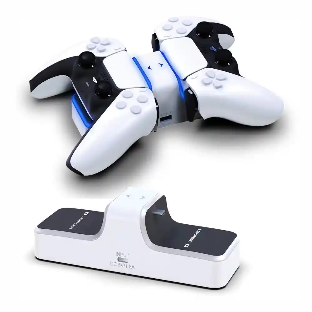Carga simultanea: siempre es más divertido jugar tu PS5 con un mejor amigo o un ser querido. Esta base para controlador PS5 de carga rápida está diseñada para cargar 2 controladores inalámbricos al mismo tiempo. Diseño elegante y con estilo : resalté el aspecto moderno de su sala de juegos con este cargador de controlador de PS5. Está equipado con una función de luz ambiental, además de luces indicadoras LED rojas y azules. La seguridad siempre es lo primero: no hay necesidad de preocuparse por la sobrecarga de sus controladores PS5. Esta base de carga para PS5 utiliza protección contra sobrevoltaje y bajo voltaje para garantizar una carga segura. No solo para controles: cargue más dispositivos con esta estación de acoplamiento PS5. Está equipado con un puerto USB adicional, donde puede conectar su teléfono inteligente, altavoz Bluetooth o auriculares para cargar. Un regalo epico: ¿No se te ocurre el regalo perfecto para un propietario de PS5? Esta estación de carga dual para PS5 será un excelente regalo para un jugador en Navidad o fiestas de cumpleaños Lo que obtienes en la compra 1 x Cargador doble para ps5