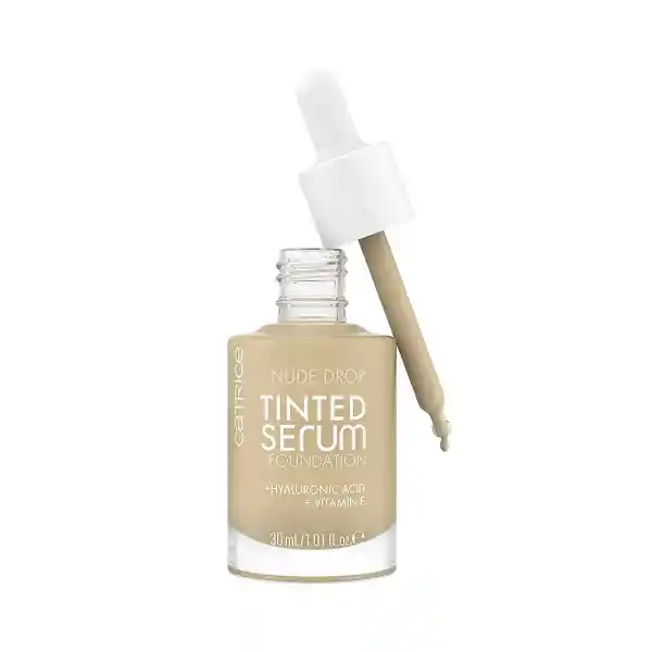 Una textura ligera como una pluma como un sérum y un rendimiento como el maquillaje: la base de maquillaje Nude Drop Tinted Serum Foundation tiene una fórmula muy fluida, ingrávida y transpirable. Contiene ácido hialurónico y vitamina E para proporcionar hidratación las 24 horas. Los pigmentos con recubrimiento especial garantizan una fijación duradera y una cobertura modulable de ligera a media para un cutis radiante con un acabado mate natural. La fórmula no tiene fragancia y es adecuada para pieles sensibles. Para obtener resultados perfectos, agite bien la combinación de suero y base de maquillaje antes de la aplicación.