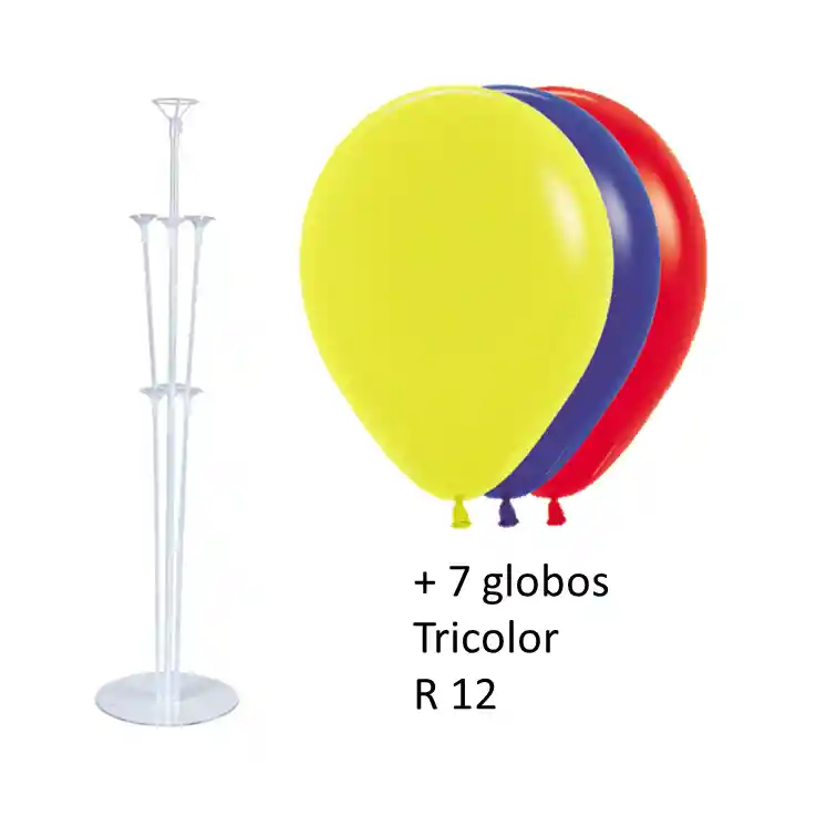 Base con Globos Tricolor Colombia Selección futbol 1 base para 7 Globos 12 Globos r12 de los colores Bandera de colombia Globos se envian sin inflar