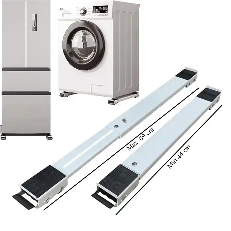 Soporte Ajustable con Ruedas para Lavadora, Nevera y Estufa – Expande hasta Max 69 cm Este soporte ajustable es la solución ideal para mover sin esfuerzo tus electrodomésticos grandes, como lavadoras, refrigeradores y estufas, facilitando la limpieza y el mantenimiento del hogar. Fabricado en acero de alta resistencia, cuenta con ruedas bloqueables y ajuste de longitud, asegurando estabilidad y protección para cualquier superficie. Características Material: Acero resistente de alta calidad. Ajustable: Extensión desde 44 cm hasta 69 cm para adaptarse a distintos tamaños. Capacidad de carga: Soporta hasta 200 kg, ideal para equipos pesados. Ruedas con bloqueo: Permite fijar el electrodoméstico en su lugar cuando se necesite estabilidad. Antivibración: Reduce el ruido y protege el suelo. Aplicaciones Perfecto para hogares, tiendas y oficinas. Facilita el movimiento de electrodomésticos pesados, permitiendo limpiar el espacio a fondo y cambiar de ubicación fácilmente. Instalación Coloca el soporte bajo las esquinas del electrodoméstico. Ajusta la longitud del soporte para cubrir completamente la base del aparato. Fija las ruedas de bloqueo para mantener el electrodoméstico en su lugar. Garantía y Vida Útil Producto con garantía de 30 días. Duradero y resistente, diseñado para soportar el peso y el movimiento frecuente de electrodomésticos. Beneficios Versatilidad: Úsalo en cualquier tipo de piso y con diferentes electrodomésticos. Fácil mantenimiento: Simplifica la limpieza debajo de lavadoras y neveras. Protección del suelo: Evita rayones y otros daños al piso.