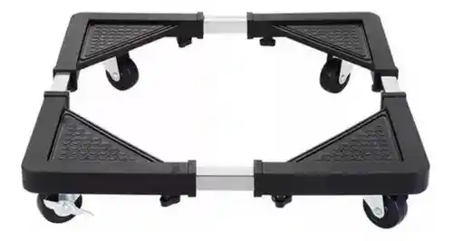 Base universal con ruedas para línea blanca -Soportes plásticos resistentes al impacto -Rodajas de polipropileno que giran 360º -Ajustable de 45 cm x 43 cm hasta 65 cm x 68 cm -Ideal para mover lavadoras y refrigeradores, facilita su limpieza y almacenamiento -Facilita el traslado y mantiene la ventilación en la parte inferior de los objetos