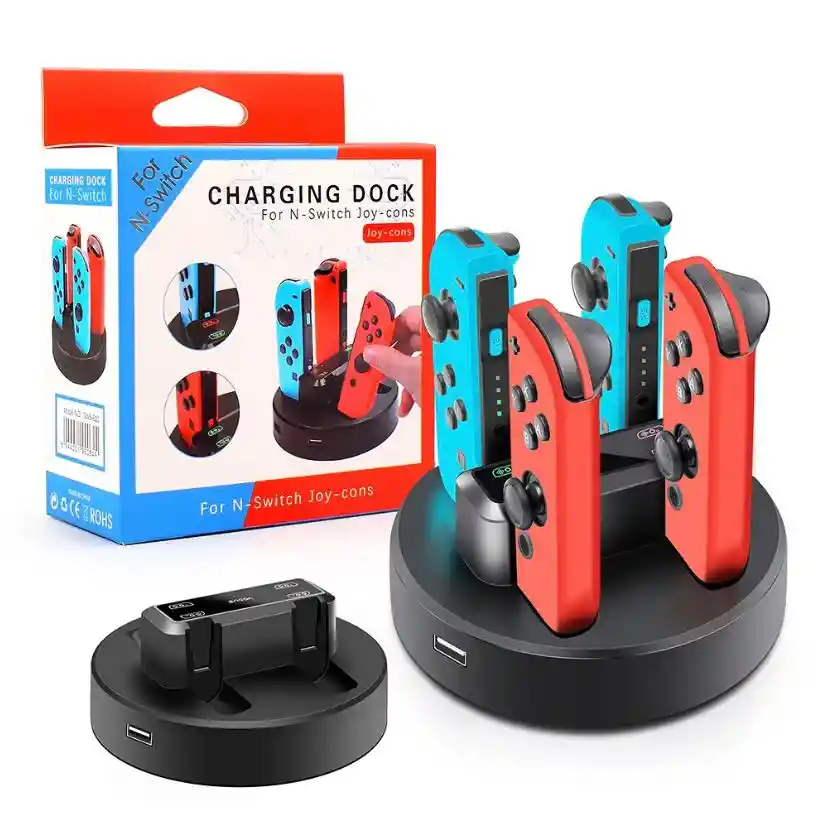 ************************SOMOS ATARISTATION VIDEOJUEGOS************************ Somos una empresa con mas de 8 años de experiencia en el mercado, especializados en la linea de consolas, videojuegos y accesorios. Estamos ubicados en la ciudad de Bogotá. 1. CARACTERISTICAS DEL PRODUCTO Esta compra incluye: *Base De Carga Para Control Joycon 4 Puestos
