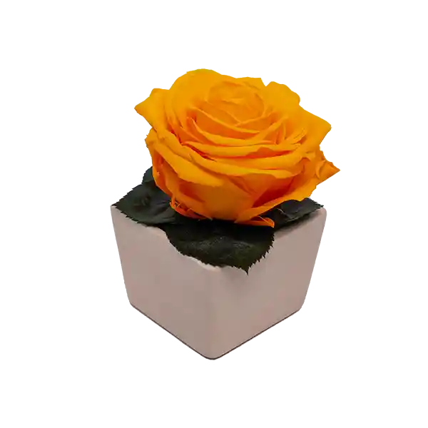Base Cerámica Cuadrada Blanca Con 1 Rosa Premium Amarillo Natural Preservada. Tamaño 8 x 9 cm