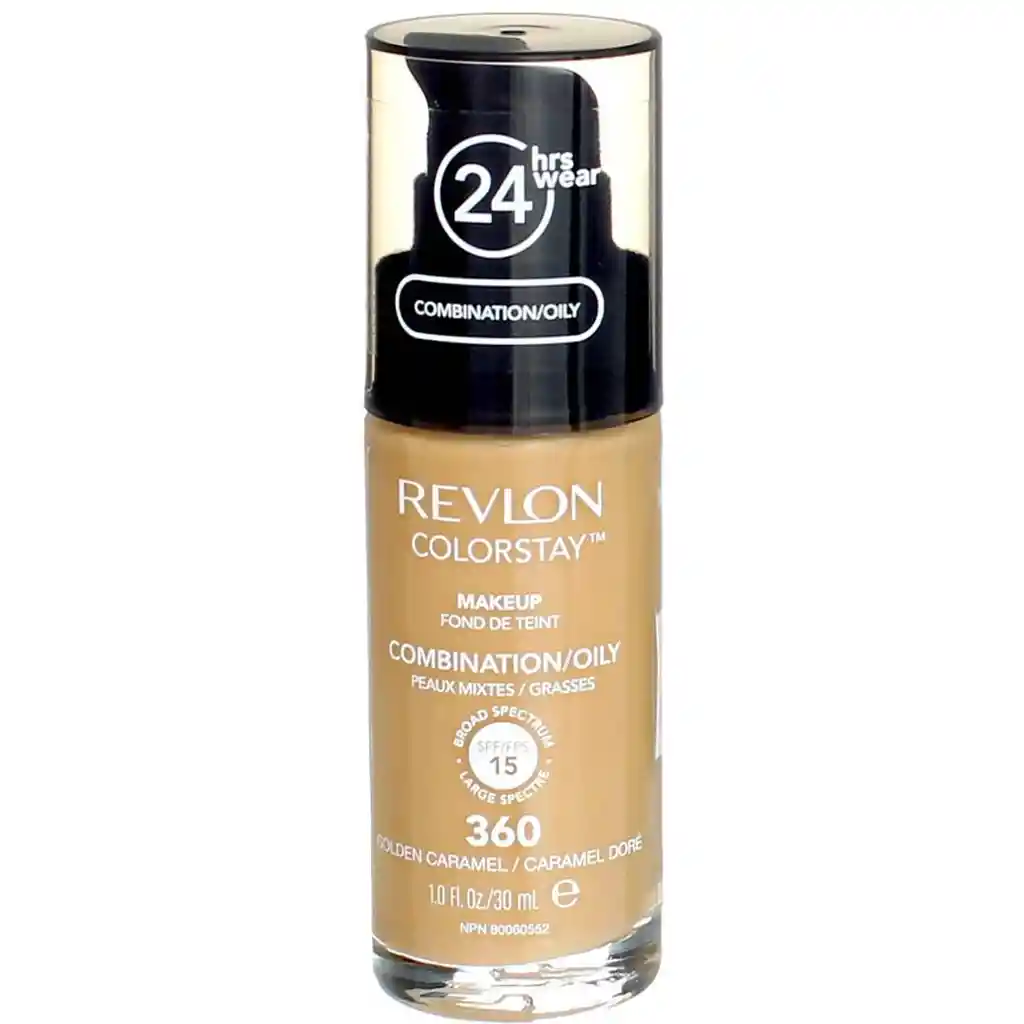 Revlon ColorStay - Base de maquillaje para pieles grasas combinadas, caramelo dorado 360, SPF 15, 1 onza líquida