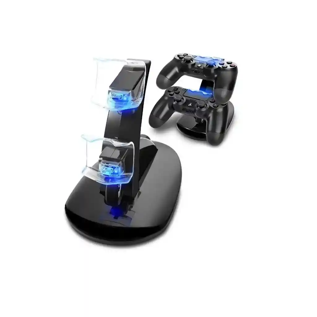 Ahora puedes cargar hasta dos controles de Play 4 inalámbricos al mismo tiempo y conéctelos rápido y fácilmente con el diseño del nuevo cargador , Sus controles se cargan tan rápido como cuando están conectados a su consola PS4, por lo que puede liberar puertos USB sin sacrificar el rendimiento. NOTA IMPORTANTE: la foto con el control play 4 solo es referencial , el control no va incluido. DETALLES Material: ABS Tipo de interfaz: USB Peso: aproximadamente 180 gramos Aplicable al producto: PS4 mango Delgado PS4 mango Pro PS4 mango Delgado PS4 mango Pro Tiempo de carga completo: La carga completa se puede completar en 2,5 horas al cargar un controlador **INFORMACION IMPORTANTE *Este producto viene en varios colores, El color de la foto es referencial para que puedas ver los atributos del producto y al mismo tiempo es la opción 1 nuestra de despacho. Pero dejamos la aclaración para que lo tengas presente por si te llegara en otro color.**