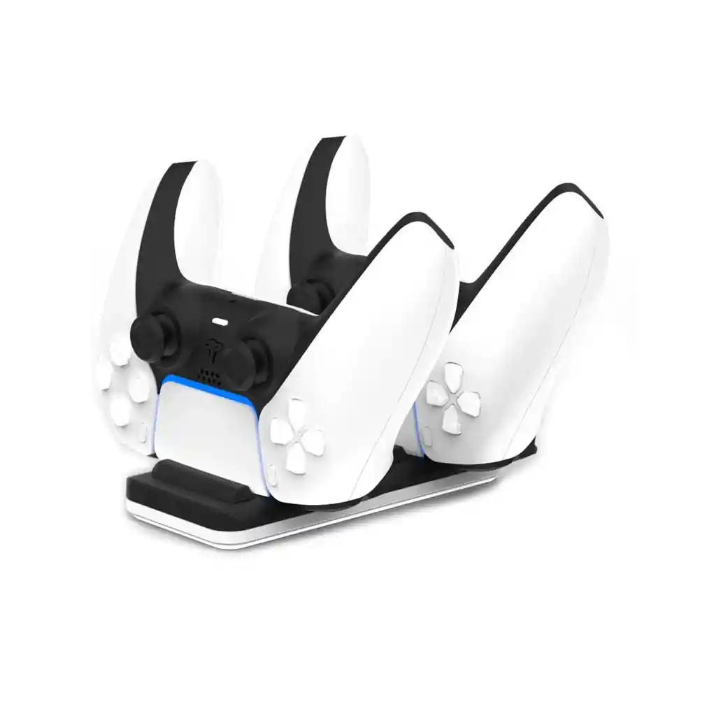 Ahora puedes cargar hasta dos controles de Play 5 inalámbricos al mismo tiempo y conéctelos rápido y fácilmente con el diseño del nuevo cargador , Sus controles se cargan tan rápido como cuando están conectados a su consola PS5, por lo que puede liberar puertos USB sin sacrificar el rendimiento. NOTA IMPORTANTE: la foto con el control play 5 solo es referencial , el control no va incluido DETALLES Voltaje de entrada: CC 5V Corriente de carga: 600 mA 3 Material: ABS Carga completa: aproximadamente 3,5-4 horas Tamaño del producto: 2x6x14 Ámbito de aplicación: para el controlador PS5 **INFORMACION IMPORTANTE *Este producto viene en varios colores, El color de la foto es referencial para que puedas ver los atributos del producto y al mismo tiempo es la opción 1 nuestra de despacho. Pero dejamos la aclaración para que lo tengas presente por si te llegara en otro color.**