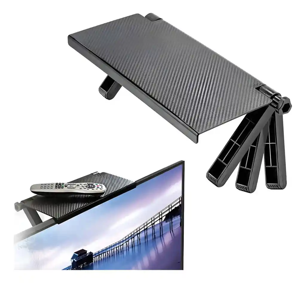 Estante de TV ajustable, estante superior, estante de exhibición, monitor de computadora, soporte de escritorio vertical. CARACTERISTICAS: •Material ABS respetuoso con el medio ambiente, seguro y saludable, resistencia a altas temperaturas, sin deformación, resistente y duradero. •Diseño creativo para maximizar la utilización del espacio. •Completamente nuevo y de alta calidad. •Deje que el escritorio desordenado luzca nuevo y dé un buen humor al trabajo. •Peso: aproximadamente 500g •Material: ABS •Color: Negro •Punto de venta: creatividad, uso del espacio, materiales de calidad. QUE INCLUYE: •1 Base Estante Soporte Plegable Para Pantalla Tv & Computador