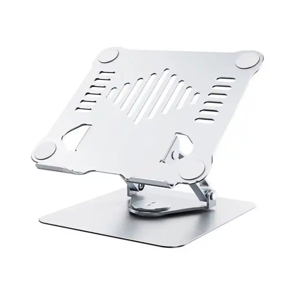 Plegable y portátil: el soporte para laptop para escritorio se puede plegar completamente, es fácil de usar y llevar. Adecuado para trabajar en casa, oficina y al aire libre, hace que escribir sea más fácil. Rotación de 360°: con una conexión de dos ejes giratoria de 360° con la base, hace que la rotación sea más flexible, el soporte de computadora te permite girar tu portátil a cualquier ángulo. Estable y duradero: el soporte elevador para portátil está hecho de aleación de aluminio, por lo que le da al soporte un rendimiento más estable, la silicona antideslizante puede proteger tu portátil de deslizamientos. Amplia compatibilidad: soporte para laptop MacBook de 12 pulgadas/13 pulgadas, MacBook Air de 13 pulgadas, MacBook Pro de 13 pulgadas/14 pulgadas/15.6 pulgadas, Dell XPS HP Lenovo Acer Chromebook y más todos los portátiles de 10 a 16 pulgadas. Diseño ergonómico: puedes ajustar libremente la altura y el ángulo del soporte para laptop a un nivel de ojos perfecto y ayuda a reducir el dolor de hombros y cuello. Lo que te garantiza en una posición cómoda sin importar si estás sentado o de pie.