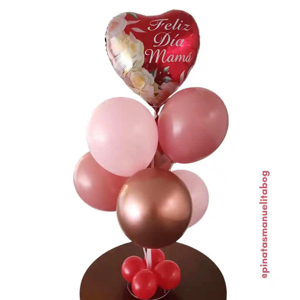 Base de globos x 7 und para mesa con globo metalizado feliz día mamá y globos en color palo de rosa y rosado. Se envia ya listo y armado o se puede enviar desinflado si es para trasladar a otra ciudad. El arreglo de globos tiene una duración de 3 días aprox. Dia de la madre, la mejor mamá, best mom, happy mother´s day.