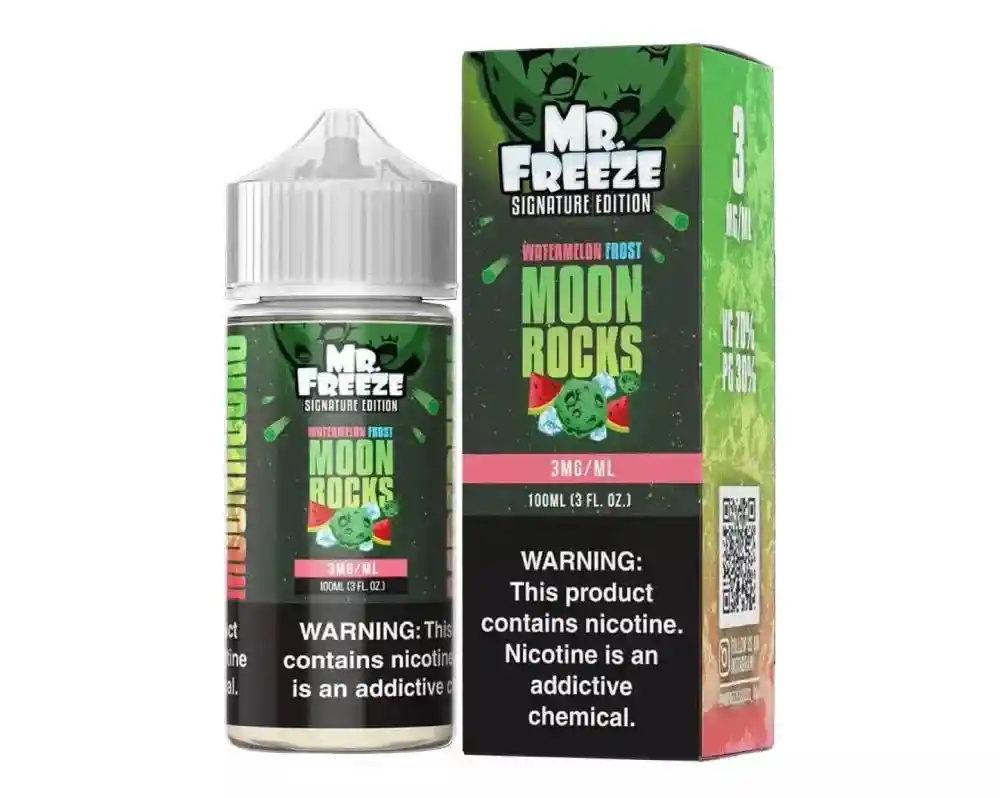 Líquido para vaporizador recargable Mr. Freeze 100ml 6mg (0.6%) de nic. de manzana verde, sandía y menta.