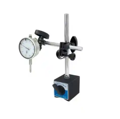 BASE MAGNÉTICA 60KG CARACTERÍSTICAS • El soporte de la base es de 5 x 5 x 7.5 cm • El vástago mide 17cm y el brazo 15.5cm • Peso total de 2 kilos NOTA: Las imagenes son de referencia y NO INCLUYE en comparador de caratula.