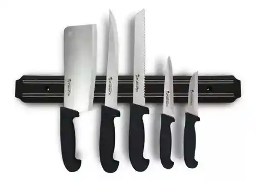 Este soporte magnético es la solución más funcional para organizar tus cuchillos. Al colgarlos en la pared, ahorras espacio valioso en el cajón y proporcionas un acceso más cómodo a tus cuchillos. Sin fricción, mejor protección para tu herramienta de corte. Es la solución simple para ayudar a eliminar el desorden de un bloque de cuchillos voluminoso. Acceso rápido y seguro a lo que más necesitas. La potente tira magnética se utiliza para sostener tus llaves de forma segura. Solo utilizamos los imanes de neodimio más fuertes disponibles. Ideal para múltiples lugares en el hogar, soporte magnético en la cocina, oficina, cuarto de lavandería o garaje para sostener cualquier objeto de metal. Asegúrate de que los niños pequeños no tengan acceso a tus cuchillos afilados. Esta tira magnética tiene una longitud extendida que te permite sostener más cuchillos que la mayoría de los bloques de cuchillos en el mercado mientras que sigue siendo lo suficientemente pequeña para caber bien en muchos rincones y grietas en tu montaje en paredes de cocina con facilidad. Instalación y limpieza rápidas: fija los tornillos incluidos e instálalos en la pared. Para limpiarlo con un paño suave y húmedo. Lavar con agua y detergente o jabón suave si es necesario. Limpiar con un paño limpio.