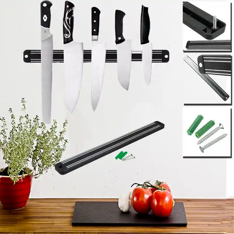 Soporte de cuchillo magnético fuerte de 38 cm soporte de pared estante de almacenamiento multiusos estante de pared Usa este soporte para cuchillos para guardar cuchillos, tijeras, herramientas, juguetes para niños, llaves y otros artículos. Fácil de instalar, fácil de limpiar y usar. Especificaciones: Material: plástico ABS Color: Negro Diseño: magnético Método de instalación: punzón Tamaño: aproximadamente (largo x ancho x Alto) 38 x3,3 cm x 1,3 cm