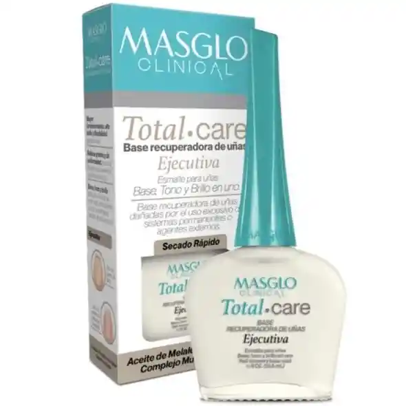 BASE MASGLO EJECUTIVA 13,5 ML : El tratamiento favorito para las uñas ahora viene en dos nuevos tonos: Ejecutiva y Blanco Nácar. Base tipo Tratamiento Aumenta la retención de la humedad. Refuerza las uñas, aumenta su grosor. Promueve el crecimiento. Rellena grietas y da uniformidad. Con AceitedeMelaleucaAlternifolia enriquecida con microesferas de lípidos que contienen los ingredientes activos del Aceite de árbol de té, aminoácidos y proteínas vegetales hidrolizadas de Soya y Trigo, que ayudan a fortalecer y restaurar la uña ayudando a prevenir la fragilidad y escamación. Vitaminas A,C,E y F: aumentan la retención de la humedad Base, Tono y Brillo en una sola formula. 5 tonos Disponibles. Secado Rápido. Modo de uso: Aplique 2 capas, 3 veces a la semana, durante 2 meses para mejorar la condición de la uña. Dirigido a: Personas con uñas maltratadas por geles, acrílicos, semipermanentes.