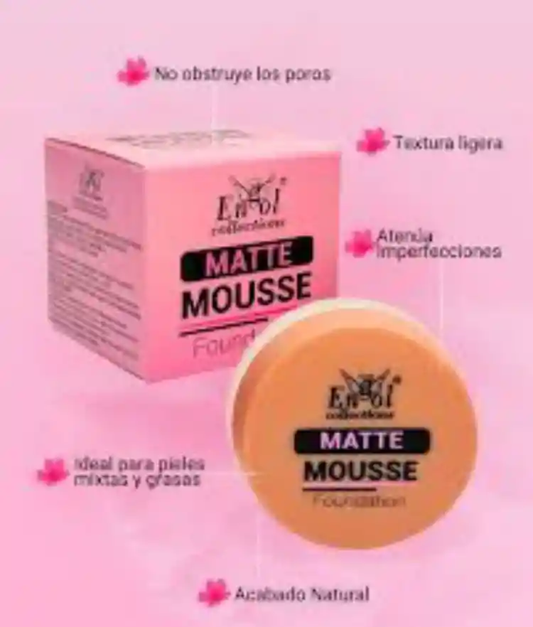 es un envase de base de maquillaje Matte Mousse de la marca Engel Collections. Tipo de producto: Base de maquillaje (Foundation). Acabado: Mate. Textura: Mousse. Marca: Engel Collections.