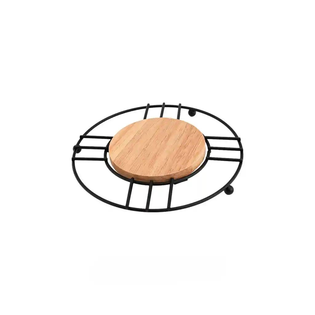 Combina madera natural y hierro . Cuenta un pequeño circulo de madera. Base resistente y fuerte. Patas elaboradas en bolitas de hierro. Elemento de alta calidad. Diseñado para soportar altas temperaturas. Perfecto para decorar tu cocina. Útil para recipientes calientes. Proteger tus superficies de daños por calor. Pieza versátil y duradera . Estructura firme y estable. Perfecto para cocina y mesa. Fácil limpieza y mantenimiento. La imagen ha sido ambientada; no incluye accesorios adicionales y el color puede variar según la iluminación.