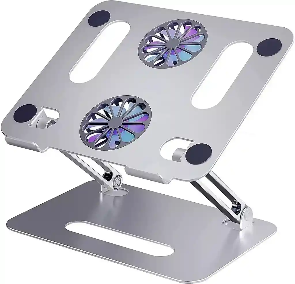 Este soporte para portátil se adapta a todos los modelos de tabletas y portátiles y tamaños de 10 a 17 pulgadas Soporte ergonómico y ajustable para ordenador portátil Diseño duradero y ventilado con ventiladores ultra silenciosos Soporte ajustable para portátil resistente y estable Soporte plegable y portátil para portátil