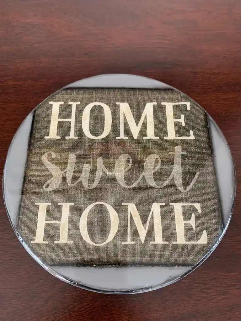 Base en madera resinada pintada a mano con técnica decoupage. Perfecta para tablas de quesos, como porta caliente o decorativa. Medida: 20 cm de diámetro.