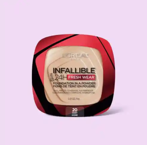 La base en polvo Infallible Fresh Wear cubre como un líquido y matifica sin aspecto pastoso por hasta 24 horas, Textura de polvo ligera para una cobertura completa y un acabado mate natural que se ve fresco hora tras hora, La fórmula de la base en polvo se siente transpirable y ligera y deja la piel cómoda hasta 24 horas, Este producto tiene un efecto de difuminado y reduce el aspecto de brillo para una tez uniforme. No se cae y es resistente al agua, resistente al calor y al sudor, Disponible en 16 tonos, apto para todos los tipos de piel, piel grasa y piel propensa al acné. La fórmula no es comedogénica, sin sensación grasa y ha sido probada bajo control dermatológico