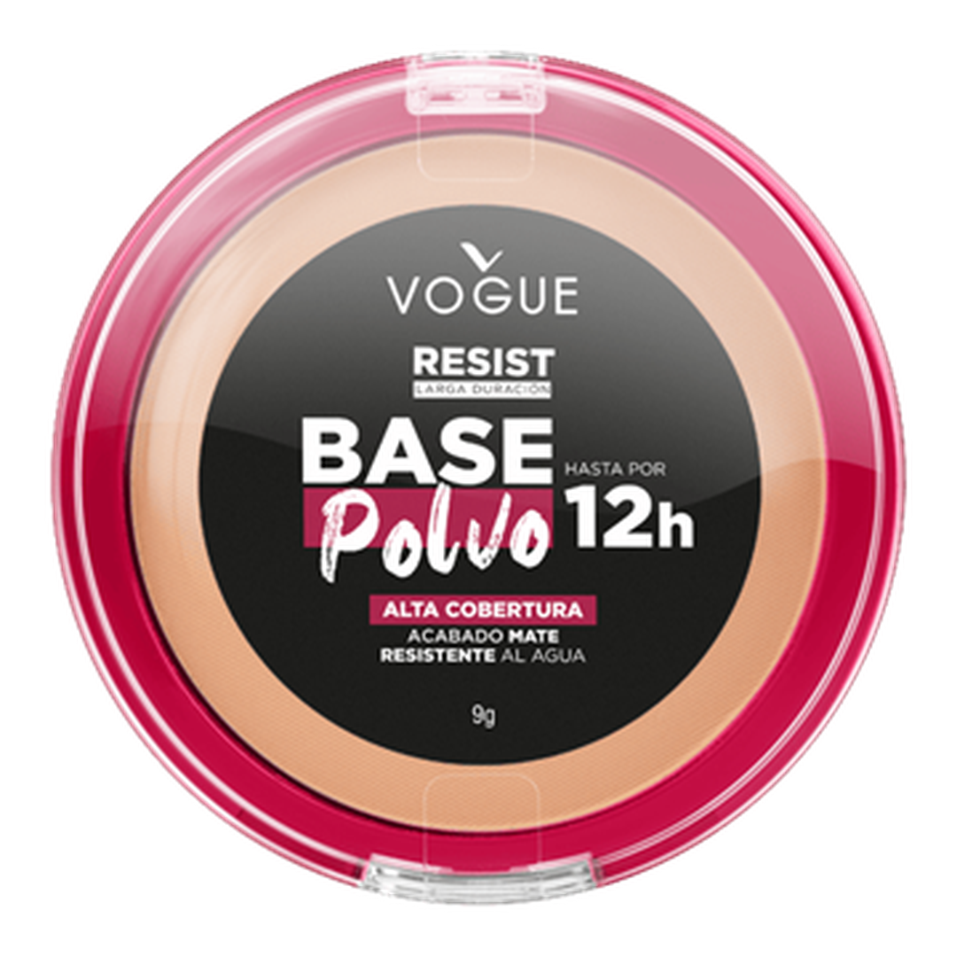 Base Polvo Resist 2 en 1 con duración de 12 horas. Detalles de producto Conoce la nueva base polvo resist, con hipoalergénico, cobertura alta de base líquida, la textura ligera y la facilidad de aplicación de un polvo, dura hasta 12 horas, acabado mate, sensación y acabado aterciopelado y no transfiere, aprueba de sudor y humedad. Ingredientes TALC, PERLITE, TRIMETHYLSILOXYSILICATE, ZINC STEARATE, ISONONYL ISONONANOATE, ISODODECANE, HYDROGENATED POLYDECENE, LAUROYL LYSINE, CAPRYLYL GLYCOL, SYNTHETIC FLUORPHLOGOPITE, DIMETHICONE Uso Tomar con el pomo la cantidad suficiente de polvo sacudiendo el exceso de producto. Aplicar sobre la piel limpia, seca y humectada hasta que logre el cubrimiento deseado.