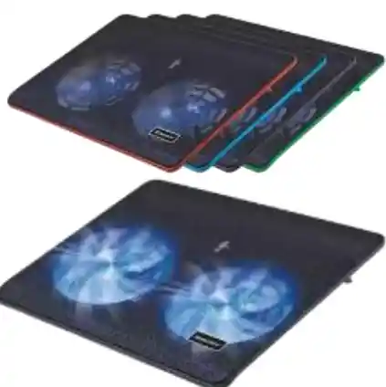 Descripción del producto Disfruta de una experiencia más fresca y cómoda con esta base refrigerante para computador portátil. Con doble ventilador silencioso y un diseño ergonómico, mantiene tu equipo a una temperatura adecuada mientras trabajas, estudias o juegas. Su superficie turbia antideslizante brinda estabilidad, y su puerto USB de doble cara facilita la conexión sin sacrificar puertos. 🔹 Características 2 ventiladores silenciosos que mejoran el flujo de aire Conexión USB 2.0 de doble cara Superficie turbia y antideslizante para mayor estabilidad Diseño ergonómico que mejora la postura de uso Compatible con portátiles de hasta 17 pulgadas Ligera y fácil de transportar Ideal para oficina, estudio o entretenimiento