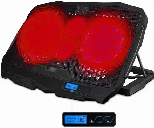 Características •Compatible con laptops de 13 a 17 pulgadas •4 ventiladores de enfriamiento, 2 grandes y 2 pequeños •2 puertos USB •Pantalla LCD con 6 velocidades de ventilador diferentes •3 modos diferentes de enfriamiento •Velocidad de ventiladores ajustable •4 soportes ajustables en altura •Luces LED: azules •Material: malla metálica, plástico, caucho •Dimensión : 39 x 28 x 2.8 cm