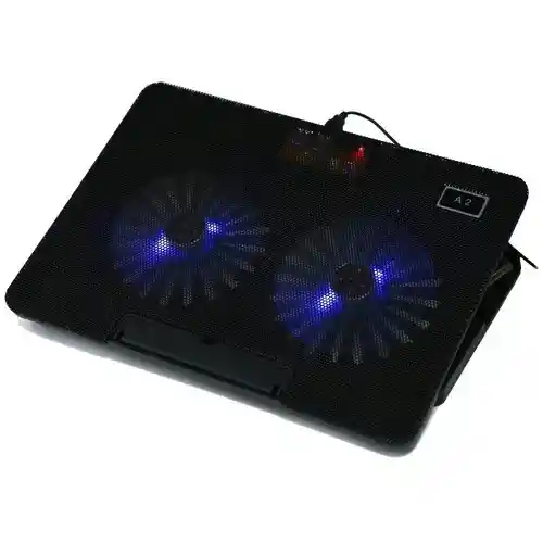 Dos ventiladores grandes con masivo flujo de aire, para máximo enfriamiento. Un puerto adicional USB. Cinco Ángulos de apoyo con Diseño ergonómico, para una sensación más cómoda. Antideslizante para garantizar la seguridad del portátil. Cuenta con interrumptor para encender y apagar ventiladores. Color: Negro Tamaño: Mediano Peso (g): 320G Contenido de la caja incluye una Base Refrigerante 638ª C/2 ventiladores Plegables Negro con sus partes.