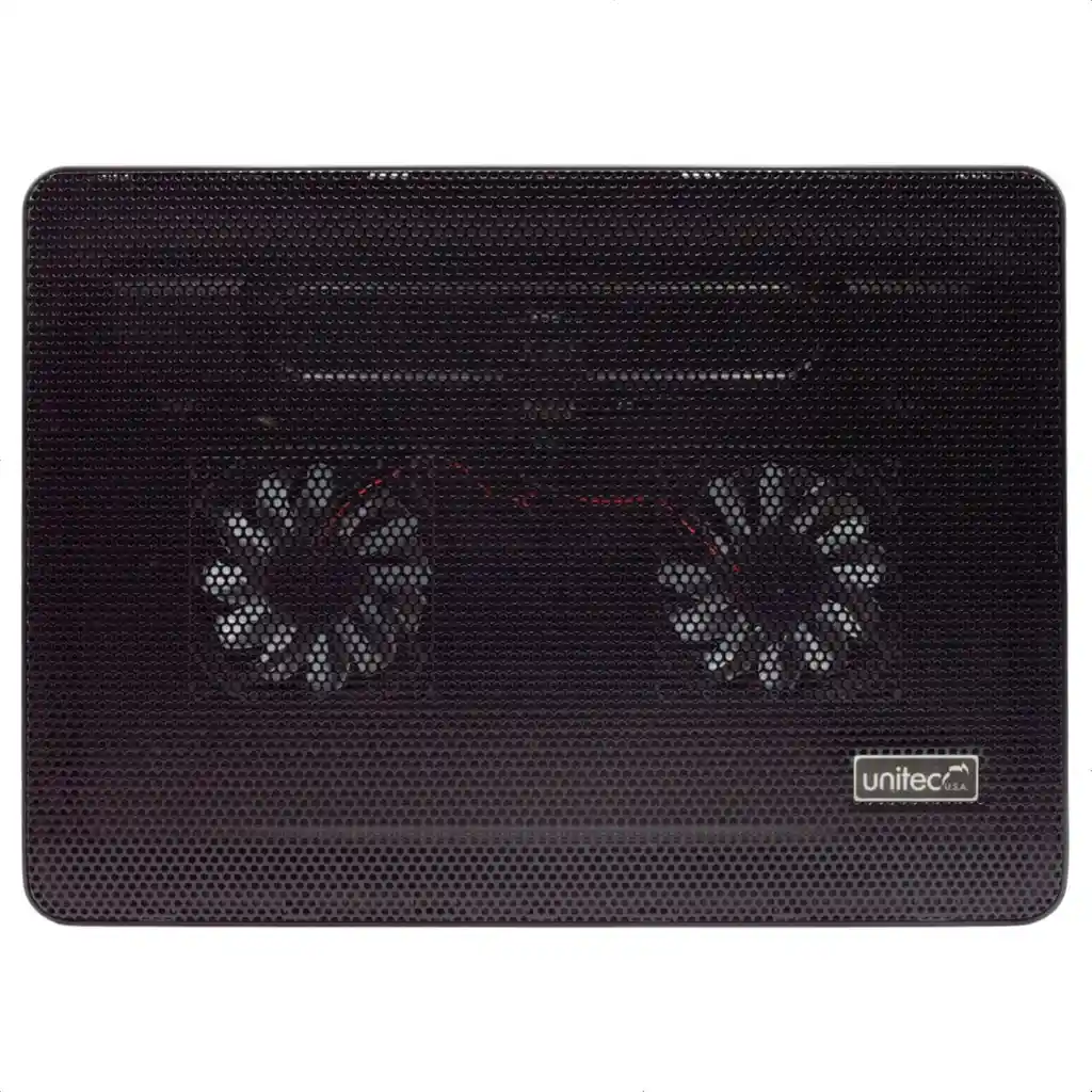 Base Refrigerante Unitec NCP-064, 2 Niveles 2 Ventiladores - LED La Base Refrigerante Unitec NCP-064 es la solución ideal para mantener tu portátil a temperaturas óptimas mientras trabajas o juegas. Diseñada con dos ventiladores silenciosos y luz LED decorativa, proporciona un enfriamiento eficiente y un toque moderno. Su diseño ajustable con dos niveles permite una mayor comodidad al usar portátiles de hasta 17 pulgadas, adaptándose a tus necesidades ergonómicas. Además, cuenta con dos puertos USB para mayor conectividad, lo que la convierte en una herramienta funcional y versátil. Con dimensiones compactas de 330x250x30 mm y un peso ligero de 480 g, esta base es fácil de transportar y almacenar. Sus ventiladores de 80x80x15 mm operan a una velocidad de 1000 ± 10% RPM, generando un flujo de aire máximo de 44 CFM con un bajo consumo energético de 2 W. Compatible con tensiones de 4.5 a 5 V DC, garantiza un rendimiento estable y confiable. La Unitec NCP-064 no solo protege tu portátil del sobrecalentamiento, sino que también mejora tu experiencia de uso con su diseño práctico y eficiente. CARACTERÍSTICAS Compatibilidad: Soporta portátiles de hasta 17 pulgadas. Ventiladores: Cantidad: 2 ventiladores silenciosos. Dimensiones: 80 x 80 x 15 mm. Velocidad: 1000 +/- 10% RPM. Caudal de aire máximo: 44 CFM. Conectividad: 2 puertos USB para mayor funcionalidad. Energía: Tensión nominal: 5V DC. Tensión de funcionamiento: 4.5V-5V DC. Tensión de arranque: 4V DC. Corriente nominal: 0.4 A +/- 10%. Potencia de entrada: 2 W. Diseño: Luz LED decorativa. Dos niveles ajustables para mayor ergonomía. Dimensiones y peso: Base: 330 x 250 x 30 mm. Peso: 480 g.