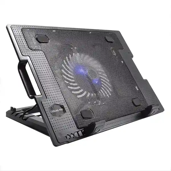 Base refrigerante reclinable T, con excelente diseño, este producto cuenta con las siguientes características: -1 ventilador. – 2 conexiones USB. -Reclinable. -Ideal para equipos entre 10 Plg y 16 Plg