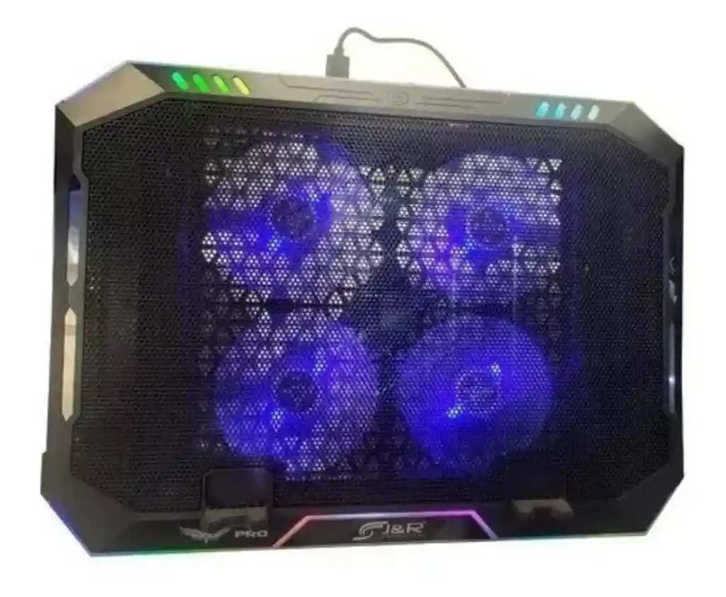 Características: - Base refrigerante reclinable RGB Gamer 4 ventiladores para Portátil - Marca: JYR BRJR-014 - Edición Gamer con led RGB en los bordes, cambia los colores con interruptor - Evita el recalentamiento de su computador y por ende le da más vida útil - Diseño ergonómico - Múltiples ángulos que proporcionan 5 alturas - Ajuste de velocidad de los ventiladores - 4 ventiladores medianos - Velocidad de los Ventiladores: 1400 Rpm - Control de velocidad de los ventiladores - Ajustable a 5 posiciones - Voltaje de entrada: 5V DC - Diseño especial RGB, eficiente y silencioso - Se conecta al puerto USB de su portátil y listo! - Diseño delgado y elegante con sistema de inclinación 5 posiciones - Dimensiones: - máximo de inclinación 15 cm - Nivel de ruido: 23 dBA - Incluye 2 puertos USB 2.0 - Incluye el cable USB para conectarla al PC o fuente a 5V - Soporta portátiles hasta 17"
