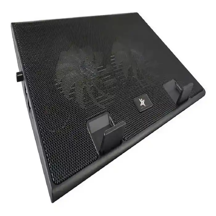 2 ventiladores silenciosos- luz led azul- 1 puerto usb- 2 niveles de posición ajustable- para portatiles de 12 "a 15-4"- estructura firme y liviana- boton de encendido y apagado- topes de seguridad que no permiten deslizamiento.