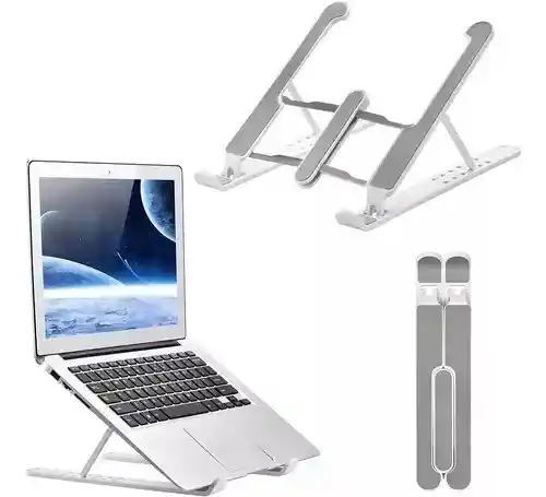 Base Soporte Portátil Laptop Plegable Blanca DISPONIBLE EN COLOR BLANCA ¿Teletrabajo o trabajo en casa? hazlo más eficiente, evita dolores de cuello y espalda ubicando tu portátil de manera correcta. Soporte para laptop plegable fácil de llevar a cualquier lado. Hecho en plástico butadieno estireno o ABS (por sus siglas en inglés Acrylonitrile Butadiene Styrene) un plástico muy resistente a golpes y resistente al calor. Compatible para computadores portátiles pequeños, macbooks, tablets, y libros.