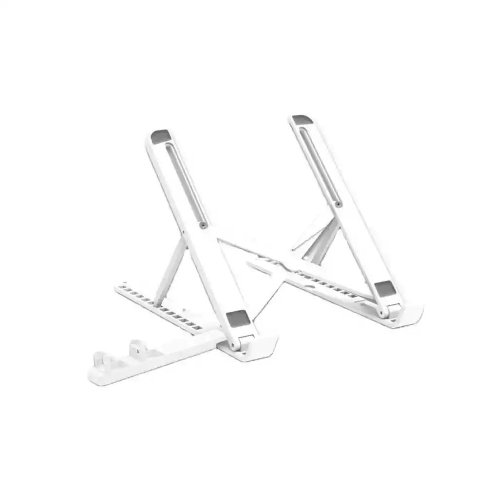 Dimensiones en Cms Ancho 19,5 cm Largo o Fondo: 25.5 cm Importante: Disponible en el momento solo en blanca Plegable o Expansible, llévala a donde prefieras sin ocupar espacio 13 ángulos de ajuste, ergonómica Soporta dispositivos de hasta 14" Soporte adicional para smartphone Material en Plástico y y silicona Adhesivo antideslizantes incluias dentro del empaque Podrás viajar o trasladarte de manera práctica y cómoda con estes soporte expansible, Llévala a donde prefieras si eres un nómada digital o si debes trabajar en cualquier sitio. Adicional incorpora un soporte para celular. Ideal si eres una oficina móvil. Ajustable a 13 ángulos lo que se traduce en ergonomía, salud visual y descanso para la espalda, con almohadillas antideslizantes y soporta portátiles hasta de 14 pulgadas.