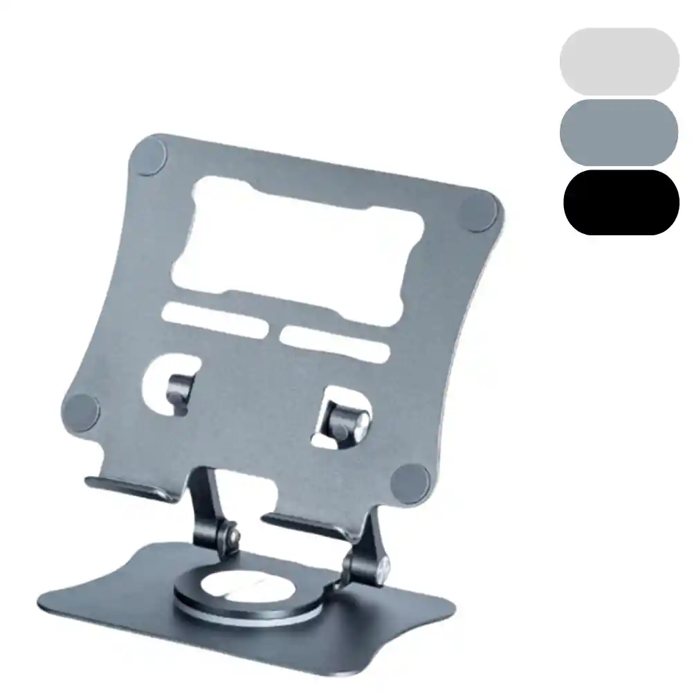 Giro de 360 Grados: La flexibilidad toma un nuevo significado con la función de rotación completa de 360 grados. Ya sea en modo horizontal o vertical, tendrás el control total sobre cómo presentar, compartir o interactuar con tu tableta. Ángulo de Inclinación Ajustable: Personaliza tu experiencia visual con el ángulo de inclinación ajustable. Sea cual sea tu tarea, desde lectura hasta videoconferencias, encontrarás el ángulo perfecto para optimizar la visibilidad y la comodidad. Calidad Premium en Metal: Fabricada con metal de alta calidad, esta base irradia profesionalismo y durabilidad. Su diseño moderno y elegante se integra sin esfuerzo en cualquier entorno corporativo, elevando la estética de tu espacio de trabajo. CARACTERÍSTICAS Plegable: Inclinación Ajustable Material: Aluminio 100% Giratoria: 360°