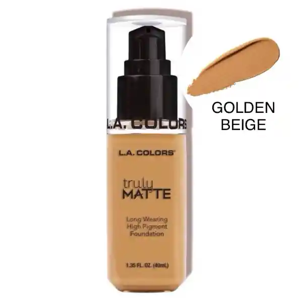 TONO GOLDEN BEIGE. La Base Líquida Truly Matte de LA COLORS tiene una fórmula estrella de extra alta cobertura y larga duración. Es a prueba de agua y salpicaduras.