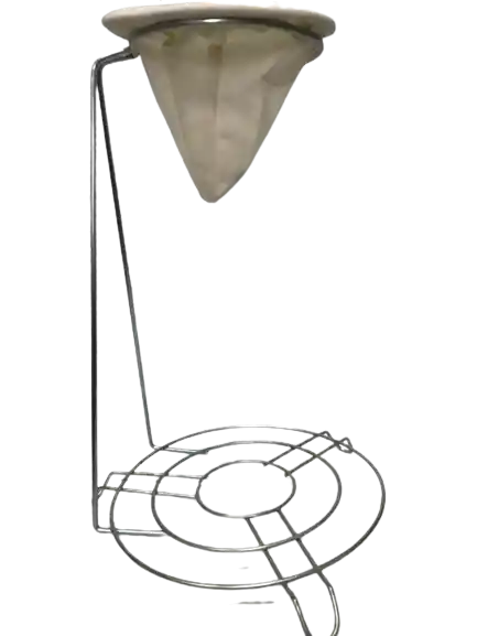 COLADOR EN TELA LIENZO CON ESTRUCTURA DE BASE METÁLICA PARA DAR SOPORTE AL COLADOR Y BRINDAR COMODIDAD EN LA PREPARACIÓN Y COLADO DEL CAFÉ. SU DISEÑO TRADICIONAL Y FABRICACIÓN ARTESANAL LO HACEN ESPECIAL PARA LOS HOGARES COLOMBIANOS. TAMAÑO: ALTO 27 CM