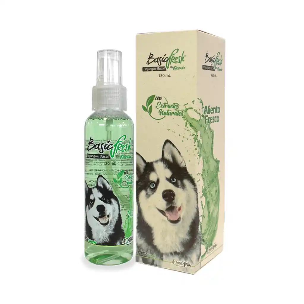 Basic Fresh es un enjuague bucal con extractos de Lavanda, Manzanilla, y Bicarbonato que desinflama la encias y evita la descomposicion del alimento atrapado entre los dientes, como excelente complemento del cepillado dental. Tamaño de la mascota: Todos los Tamaños. Etapa de la vida: Todas las Edades