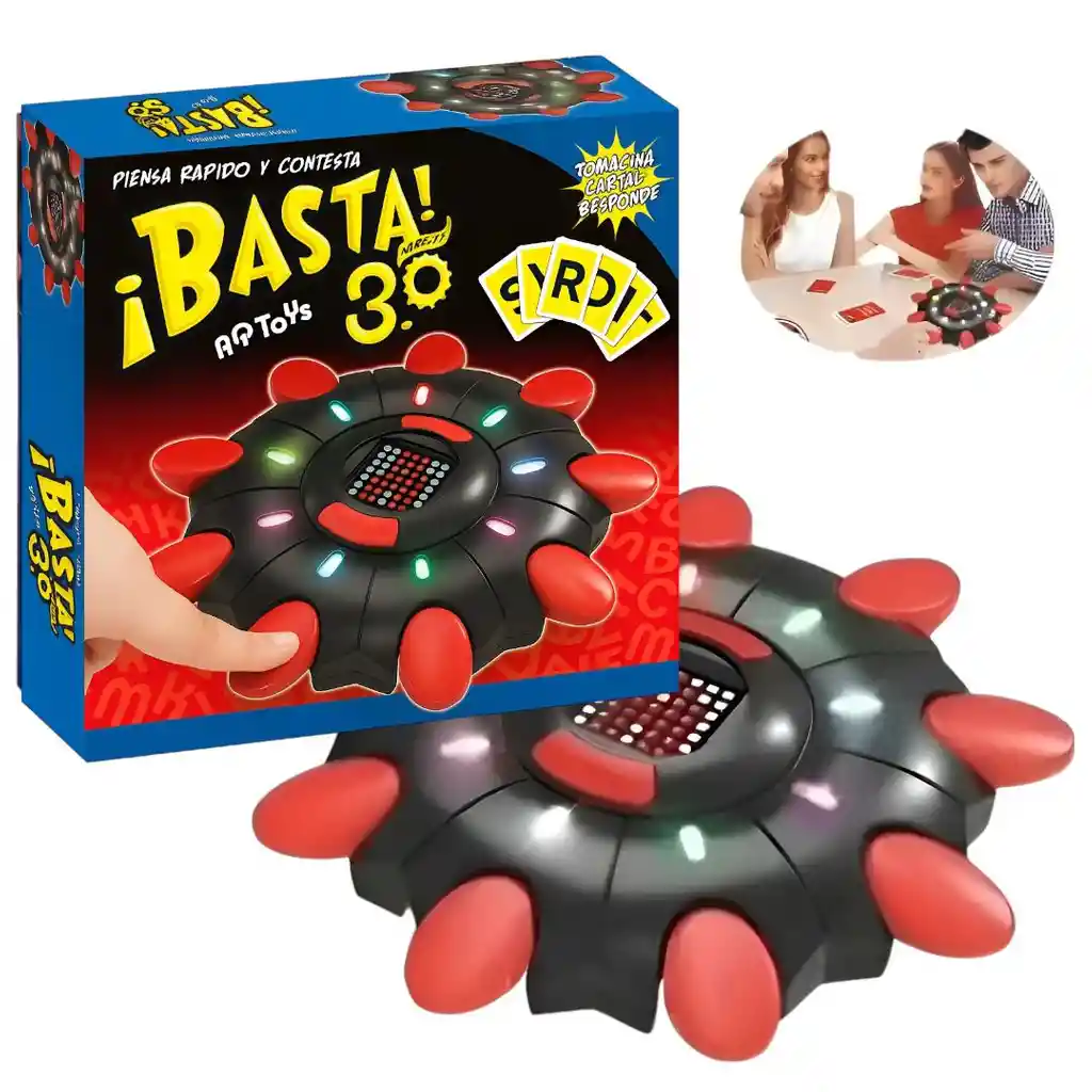 Basta 3.0 – Juego de Mesa Electrónico con Tablero Digital LED ¡Diversión Familiar Iluminada! ¡Lleva tus noches de juegos a otro nivel! El Basta 3.0 es la versión más moderna e interactiva del clásico juego de categorías. Ahora con tablero digital LED, sistema electrónico inteligente y luces dinámicas, ideal para competir, pensar rápido y disfrutar en familia o con amigos. CARACTERISTICAS: - Tablero Digital LED 2RL - Pantalla luminosa con números y letras automáticas. - Luces de colores que indican el inicio, el tiempo y el final de cada ronda. - Tecnología electrónica moderna para un juego más intuitivo. - Modo de Juego Moderno y Dinámico - El dispositivo selecciona automáticamente la letra de cada ronda. - Temporizador integrado para que todos respondan al mismo tiempo. - Suena la alerta cuando el tiempo se acaba, ¡nadie hace trampa! - Ideal para Toda la Familia - Perfecto para reuniones, tardes de juego y fiestas. - Apto para niños, jóvenes y adultos. - Desarrolla habilidades como rapidez mental, ortografía, memoria y creatividad. - Incluye 1 Tablero electrónico Basta 3.0 Sistema LED integrado Fácil de usar: solo enciende, elige categoría y ¡a jugar!