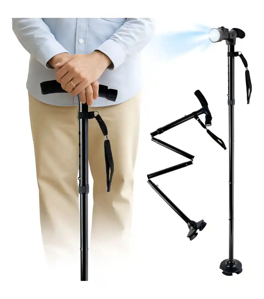 Bastón 4 Patas con Luz LED – Altura Ajustable y Plegable, un accesorio indispensable para quienes necesitan apoyo al caminar sin renunciar a la comodidad ni a la elegancia. Diseñado para adaptarse a diferentes estaturas y entornos, este bastón ofrece estabilidad superior gracias a su base de cuatro apoyos y una cabeza pivotante que sigue tus movimientos de forma natural. Ideal para personas mayores, en recuperación o con movilidad reducida, este bastón no solo es práctico, también es inteligente: incorpora una luz LED direccionable para iluminar tu camino en condiciones de poca luz, y su estructura plegable te permite guardarlo o llevarlo fácilmente a cualquier lugar. Beneficios: - Se sostiene de pie por sí solo, evitando caídas y facilitando el uso diario. - Luz LED incorporada para caminar con confianza en zonas oscuras o de noche. - Cabezal pivotante que ofrece mayor flexibilidad y seguridad en terrenos irregulares. - Altura ajustable para personas de distintas estaturas. - Diseño plegable que ahorra espacio y facilita el transporte. - Estilo moderno y discreto, ideal para cualquier ocasión. Especificaciones: - Altura regulable: hasta 98 cm - Dimensiones aproximadas: Ancho 10 cm | Largo 17 cm - Peso: 0,2 kg - Alimentación: Cartucho con pilas tipo botón (incluidas) - Luz LED orientable hacia adelante y hacia abajo - Base extra ancha con cuatro puntos de apoyo Accesorios Incluidos: - 1 bastón ortopédico plegable con luz LED - Cartucho con pilas tipo botón ya instaladas Conviértelo en tu mejor aliado para el día a día. Este bastón para caminar es ideal si buscas un bastón 4 apoyos, elegante, liviano y seguro. ¡Recupera tu independencia con total confianza!