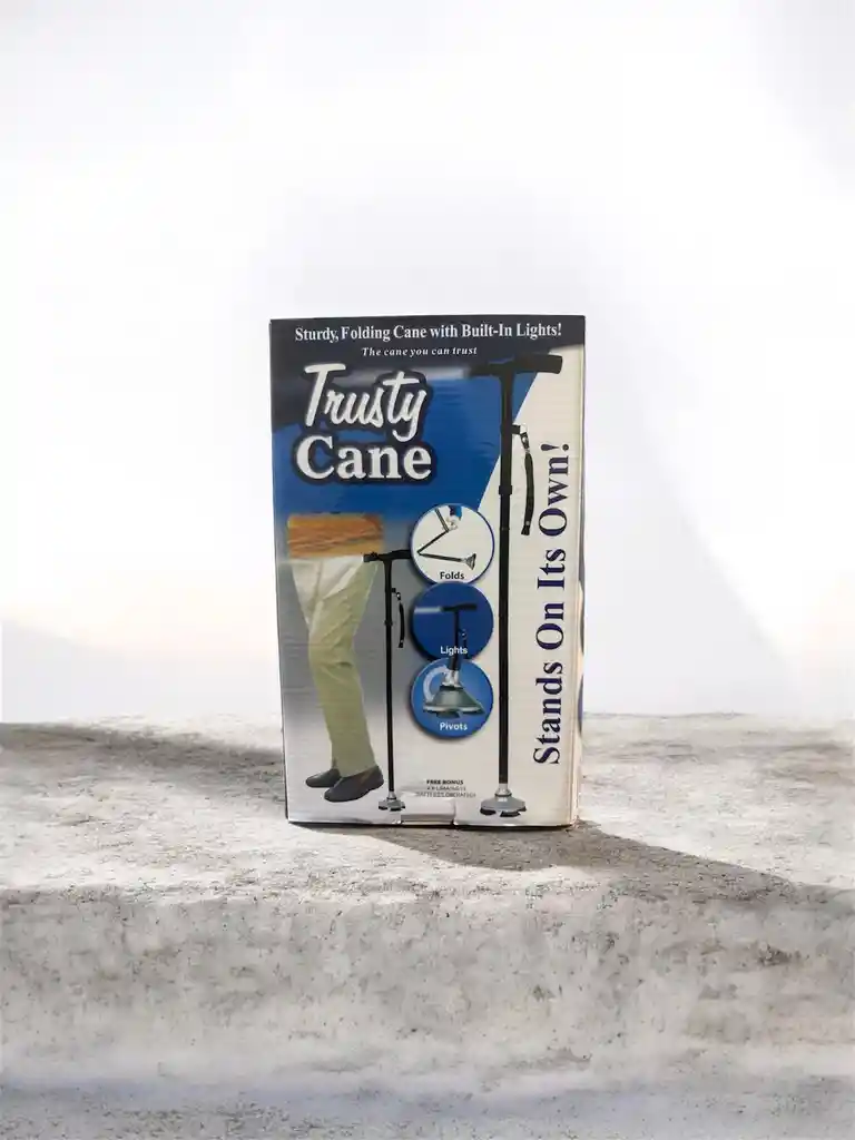 Bastón Plegable con Luz Integrada – Trusty Cane ✅ Características: • ✔️ Diseño plegable y compacto para fácil almacenamiento. • ✔️ Luz LED incorporada para mayor visibilidad en la noche. • ✔️ Base con sistema pivotante que se adapta a diferentes superficies. • ✔️ Altura ajustable para mayor comodidad. • ✔️ Mango ergonómico con correa de seguridad. • ✔️ Incluye baterías (4 x LR44/AG13). ⸻ ⭐ Ventajas: • 🔹 Mayor seguridad y estabilidad al caminar. • 🔹 Ideal para uso en interiores y exteriores. • 🔹 Permite caminar con confianza en zonas oscuras. • 🔹 Se mantiene de pie por sí solo. • 🔹 Perfecto para adultos mayores o personas en recuperación.