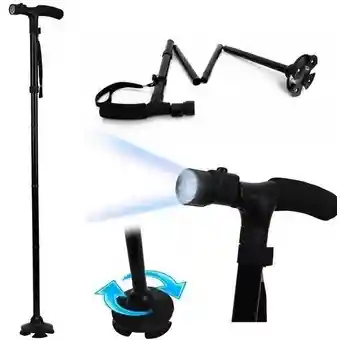 Diseño plegable: puede plegarse rápidamente para un almacenamiento cómodo. Esta caña plegable se puede plegar en 4 secciones interconectadas cuando no se utiliza. 5 niveles de altura ajustable de 33.0 in a 38.0 in en incrementos de 1.0 in.Con luz LED: 6 luces LED ajustables integradas para iluminar el camino cuando caminas por la noche. Las luces brillantes te guiarán de forma segura en la oscuridad. Nuestra caña de senderismo premium con linterna hace su vida más segura.Resistencia antideslizante de seguridad: la caña ajustable tiene una punta de goma antideslizante en la parte inferior que evita caídas y te mantiene seguro. La base giratoria de 360 grados proporciona tracción adicional y estabilidad para que la caña no se deslice si está en pavimento húmedo o en todo terreno. lo que le da la flexibilidad para caminar. correr y girar fácilmente. Soporta de forma segura hasta 250 libras. esta robusta caña le apoyará durante toda su vida diaria.Cañas robustas: hechas de aleación de aluminio. la base quad pivotante estable de 360 ° puede garantizar su seguridad y estabilidad en cualquier ángulo.Mango cómodo: mango con esponja. reduce la presión de la mano.