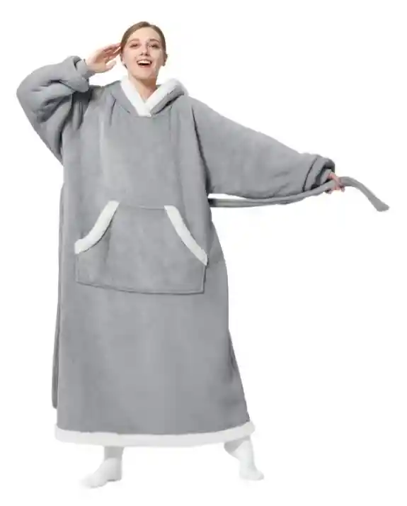 Características Destacadas: ====================================== Sorprendentemente cálida: Fabricada con 7.76 oz/m² de forro polar de poliéster grueso, irresistiblemente suave y 7.05 oz/m² de sherpa de poliéster esponjoso, esta manta de gran tamaño muestra un lado liso que complementa el lado peludo, lo que hace un excelente equilibrio entre calidez y comodidad. La longitud de la tela es de 53 pulgadas y el busto es de 32 pulgadas. La sudadera con capucha está diseñada para adultos o adolescentes que midan por lo general de 5 pies con 5 pulgadas a 5 pies con 9 pulgadas de alto. Diseño ingenioso: Diferente de los estilos ordinarios, la manta para adultos tiene aberturas con botones en el lateral para mayor comodidad. Puedes ajustar la sudadera con capucha dependiendo de qué tan fría o caliente esté la temperatura ambiente. El cinturón especial ajustable permite que la sudadera se ajuste cómodamente o suelta, lo que te permite andar alrededor o descansar en tu sofá libre y cómodamente. Diseño con capucha: Esta sudadera con capucha está equipada con una capucha grande de felpa que se dobla como una almohada para tumbarse y mantener la cabeza calentita. Los bolsillos profundos pueden contener tus accesorios y cosas, así como mantener tus manos calientes en cualquier momento. Detalles cuidadosos: Los puños acanalados son lo suficientemente elásticos como para ser empujados y permanecer, lo que te permite hacer tareas domésticas o incluso yoga. Los dobladillos de forro polar Sherpa en la parte inferior y alrededor de los bolsillos y la capucha proporcionan una mayor durabilidad y suavidad. Aplicaciones y limpieza: La manta Bedsure es ideal para el parque, dormitorio, sala de estar, oficina y mucho más. Es un gran regalo para cualquier persona y cualquier ocasión. Este es sin duda uno de los regalos más conmovedores y reflexivos en invierno. Simplemente pon esta manta con capucha sherpa en agua fría por separado en un ciclo suave. Secar en secadora a baja temperatura.